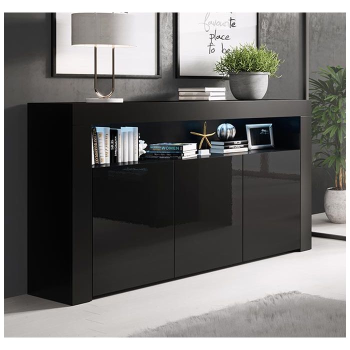 Estructura y puertas con acabado en melamina brilloSistema de cierre lento y suave soft-close