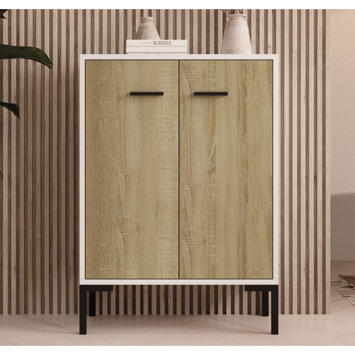 Aparador pequeño Blanco y Sonoma 84 cm Lander L15