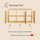 El aparador se entrega desmontado en dos cajas, con tornillería y manual de instrucciones para un montaje rápido y fácil.