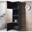 Dale un toque sofisticado y moderno a tu salón, comedor o pasillo con esta versátil vitrina con brillo en color negro. Su diseño asequible y precio bajo te permiten realzar tu decoración sin gastar una fortuna. La estructura y puerta en melamina brillo le dan un acabado deslumbrante, mientras que la puerta abatible con metacrilato y los estantes de vidrio te permiten exhibir tus objetos favoritos con estilo. Las luces LED azules crean un ambiente acogedor y resaltan tus decoraciones. La apertura push-click mantiene una estética limpia y minimalista. Un mueble barato que puedes colgar en la pared o dejar en el suelo, ofreciendo flexibilidad y elegancia para cualquier hogar.