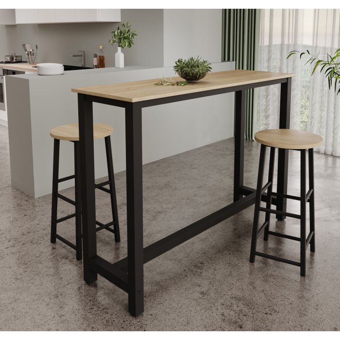 Mesa alta con 2 Taburetes Negro y Sonoma 140 cm Ani