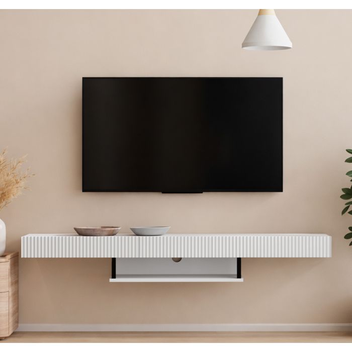 El principal atractivo de este mueble TV es su versatilidad. Puede integrarse en cualquier estancia, especialmente en espacios reducidos, y permite múltiples composiciones según tus necesidades. Su diseño atemporal lo convierte en una opción práctica y decorativa para el día a día.