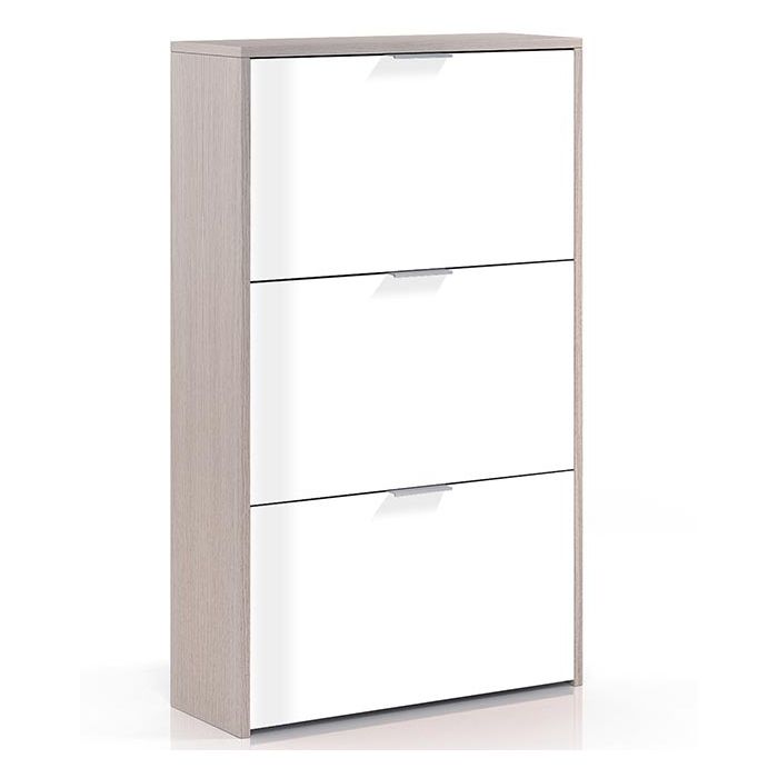 Zapatero 3 puertas modelo Atenas en color roble y blanco
