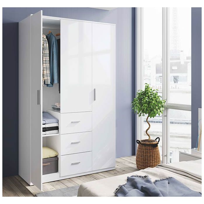 Armario de 3 puertas y 3 cajones modelo Amelia en color blanco
