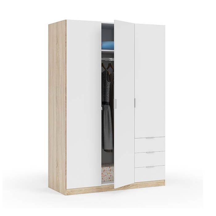 Armario de 3 puertas y 3 cajones modelo Ligura en color sonoma y blanco