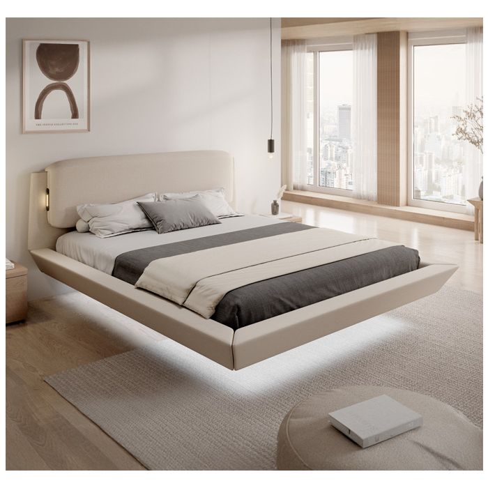 Cama de matrimonio flotante Diana con colchón en color beige (150x190cm)