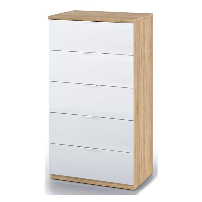 Cajonera con 5 cajones modelo Ligura en color sonoma y blanco
