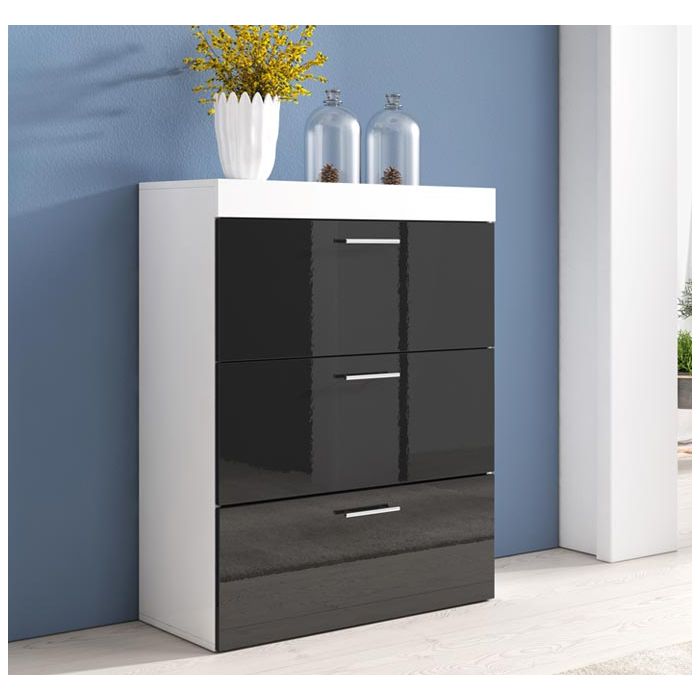 Melamina en brillo.Tiradores de metal satinado.