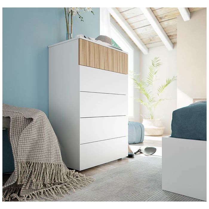 Cómoda modelo Vernisa en blanco y pino atlántico