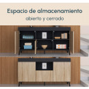 Maximiza el espacio de tu hogar sin renunciar al diseño con este aparador moderno de color negro. Esta solución de almacenaje se adapta perfectamente a cualquier salón o cocina gracias a su estructura compacta. Con tres puertas en color madera sonoma y un espacio abierto, este mueble te ofrece la combinación ideal de almacenamiento discreto y áreas de exposición. Utiliza los compartimentos cerrados para guardar tu vajilla o menaje, manteniendo el orden, mientras que en el espacio abierto podrás exhibir tus objetos decorativos favoritos o tener a mano tus dispositivos electrónicos. Este mueble de salón es la pieza que necesitas para optimizar el espacio y añadir un toque de estilo a tu decoración.