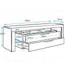 Mueble TV con 2 cajones y 3 compartimentos, 2 separados con cristal