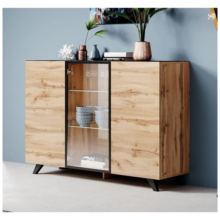 Dos puertas opacas roble wotan, detrás 2 estantes del mismo material. Fácil apertura.Principales características del Aparador: