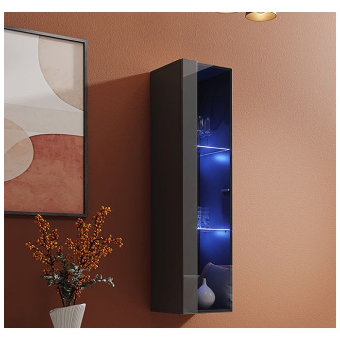 Vitrina colgante modelo Berit LD 30x120 en color gris con LED