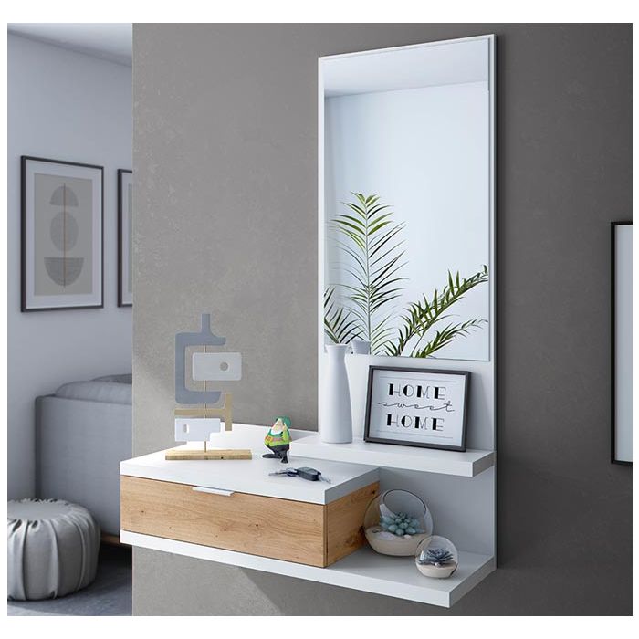 Recibidor-consola con espejo modelo Dalmacia en color roble y blanco