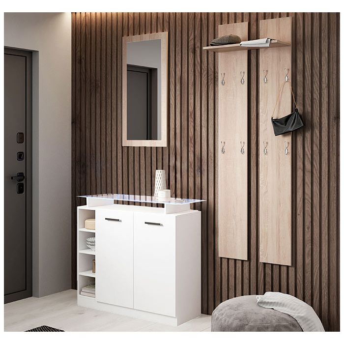 Conjunto de Recibidor con espejo y perchero Paola 2P blanco y sonoma
