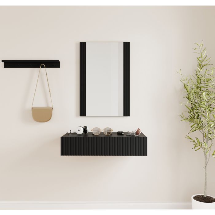 El recibidor se entrega desmontado en una caja, con tornillería (no apta para paredes de pladur)y manual de instrucciones para un montaje rápido y fácil.