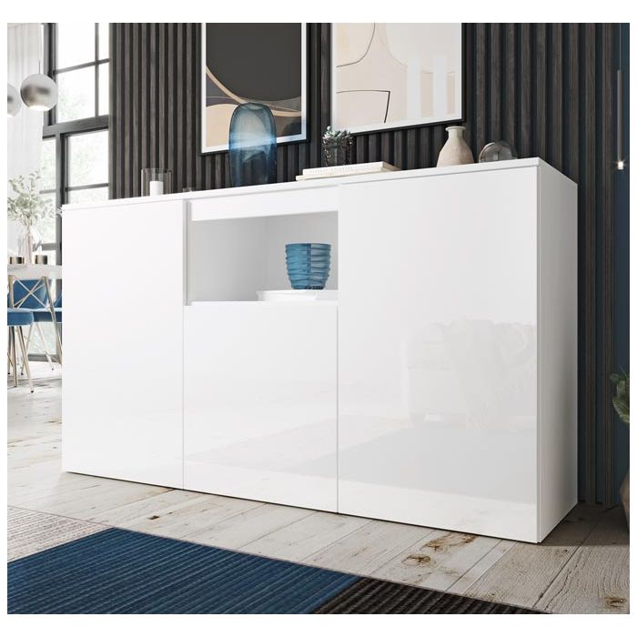 Estructura y puertas con acabado en melamina brilloApertura con sistema push-click