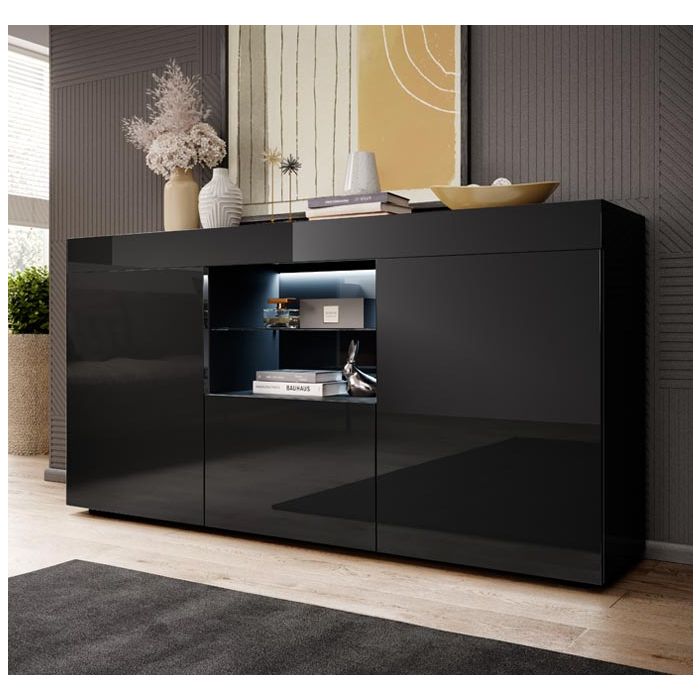 Aparador modelo Sefora color negro brillo 135x72cm.