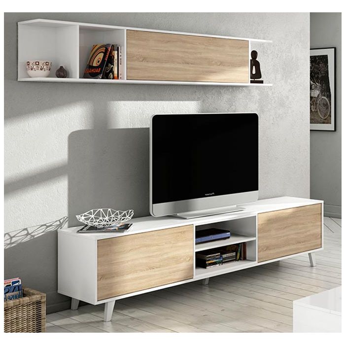 Conjunto de mueble de televisión y estante modelo Tampere en color blanco y sonoma