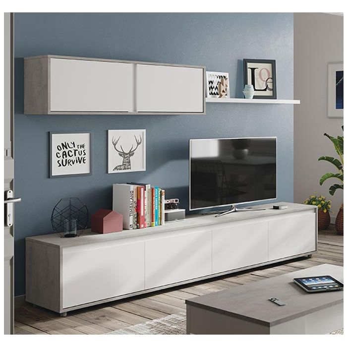Mueble de salón modelo Turku en color blanco y cemento