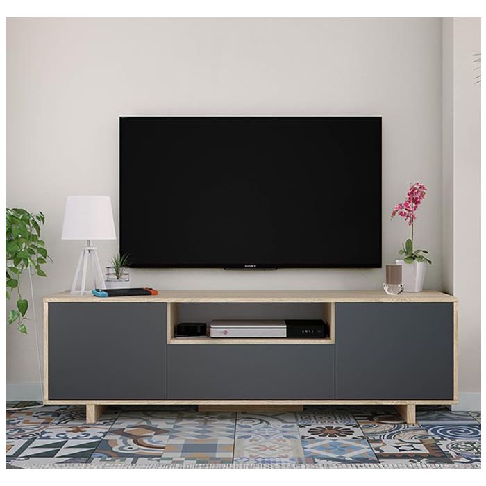 acabado en color sonoma y gris antracita.Dimensiones del Mueble TV:
