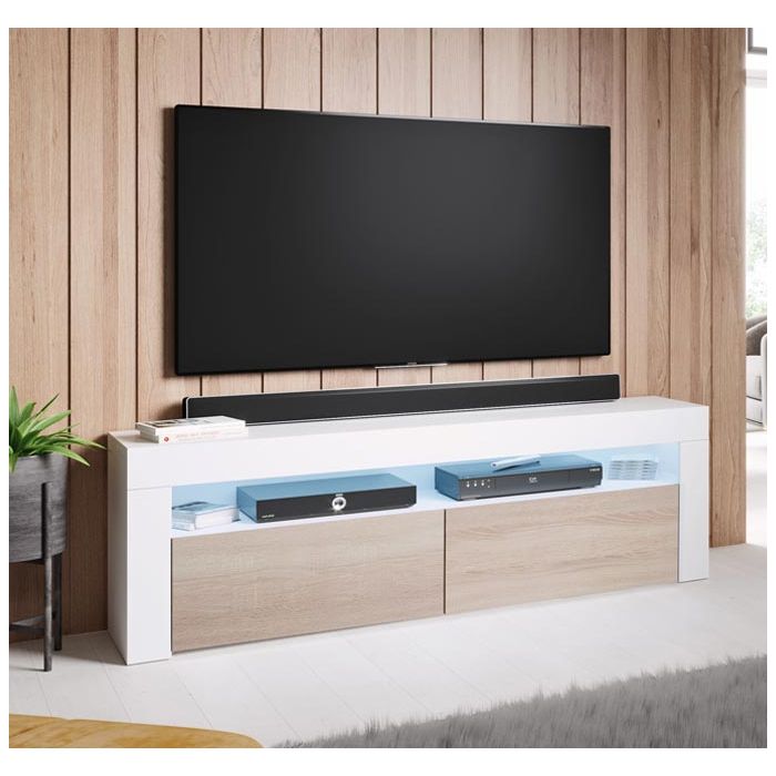 Mueble TV modelo Aker (140x50,5cm) color blanco y sonoma