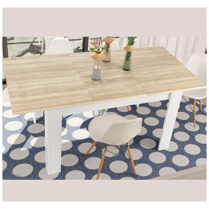 Mesa de comedor extensible de 140 - 190 cm modelo Sagunto en color blanco y sonoma