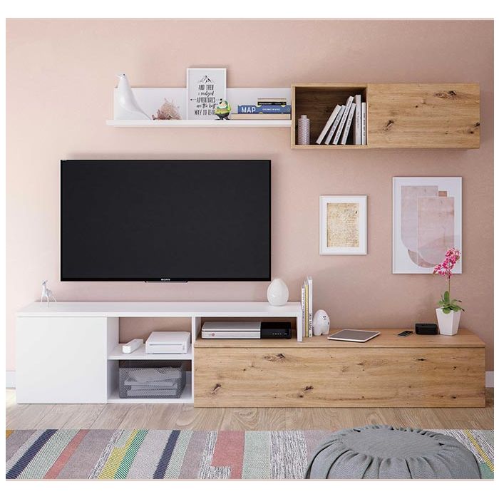 Mueble de salón modelo Budapest en color roble y blanco
