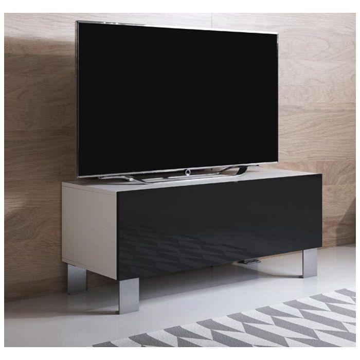 Mueble TV modelo Luke H1 (100x42cm) color blanco y negro con patas de aluminio