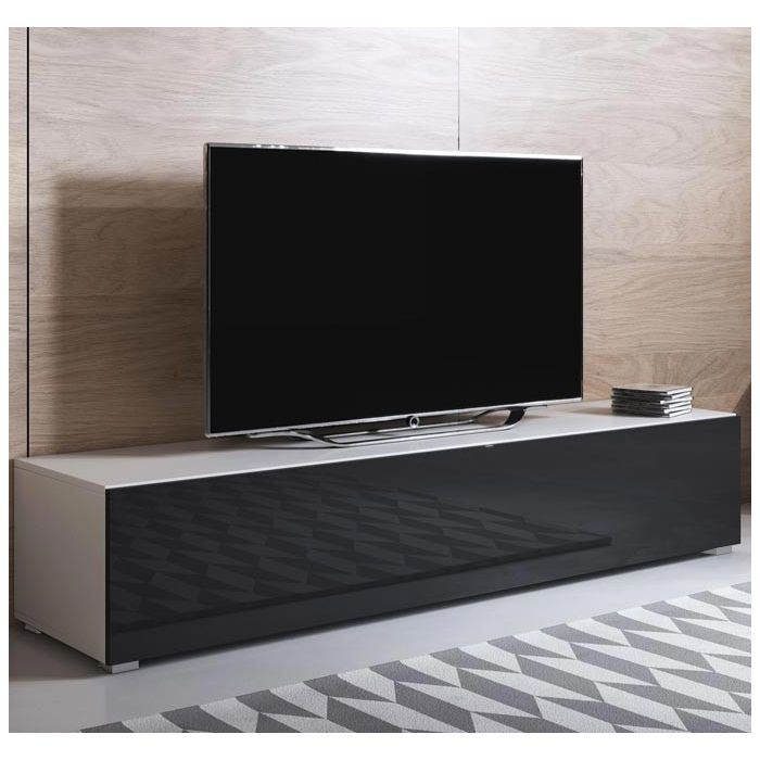 Mueble TV modelo Luke H2 (160x32cm) color blanco y negro con patas estándar