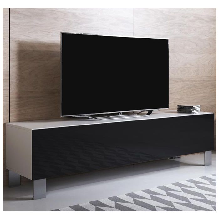 Mueble TV modelo Luke H2 (160x42cm) color blanco y negro con patas de aluminio